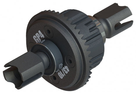 Factory assembled and filled with 10k cSt silicone oil for fast and efficient servicing - Tough steel internal gears for long-lasting durability in all conditions - Stainless steel limited slip diff plates installed for limited slip differential action - Strong composite diff case with integrated steel insert for durability - 43T GP4 spiral cut steel main gear for increased durability under extreme loads - Metal Cross Shafts for increased efficiency - Includes rubber shielded bearings for fast and efficient fit to your vehicle - 29mm Diff Case - use 29mm Diff Case spare parts
