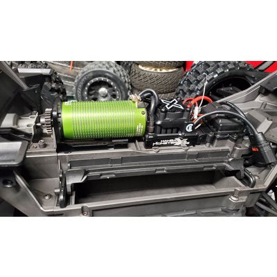 Monitor motor temperatures closely; overheating a motor will cause permanent damage to the magnets. Never exceed 180° F on the the motor or ESC. Gearing recommendations: Traxxas X-Maxx 16 pinion/35 spur, Mod 1.5 OR 24 pinion/54 spur, Mod 1, up to 8s. Arrma Kraton 8s - 24 pinion/47 spur, up to 8s. Arrma Outcast 8s - 24 pinion/47 spur, up to 8s. |