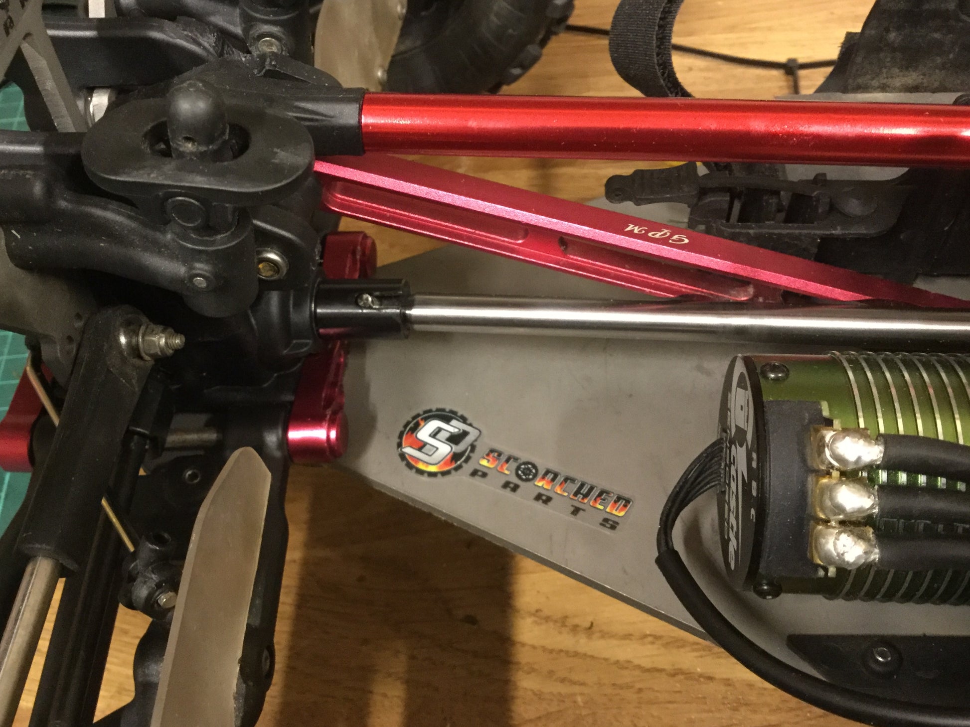 Some chassis braces and servo mounts may require slight modification to create clearance to the larger shaft