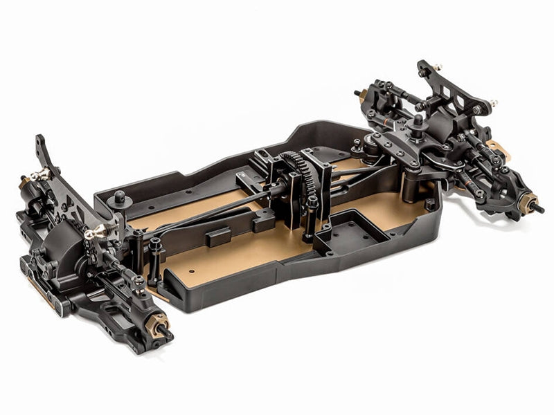 The 4wd transmission utilises a 3-differential design for maximum stability and drive under power, all assembled with high precision metal gears throughout for maximum durability. Fine tuning of the double wishbone suspension is a simple task via the adjustable turnbuckle links throughout.