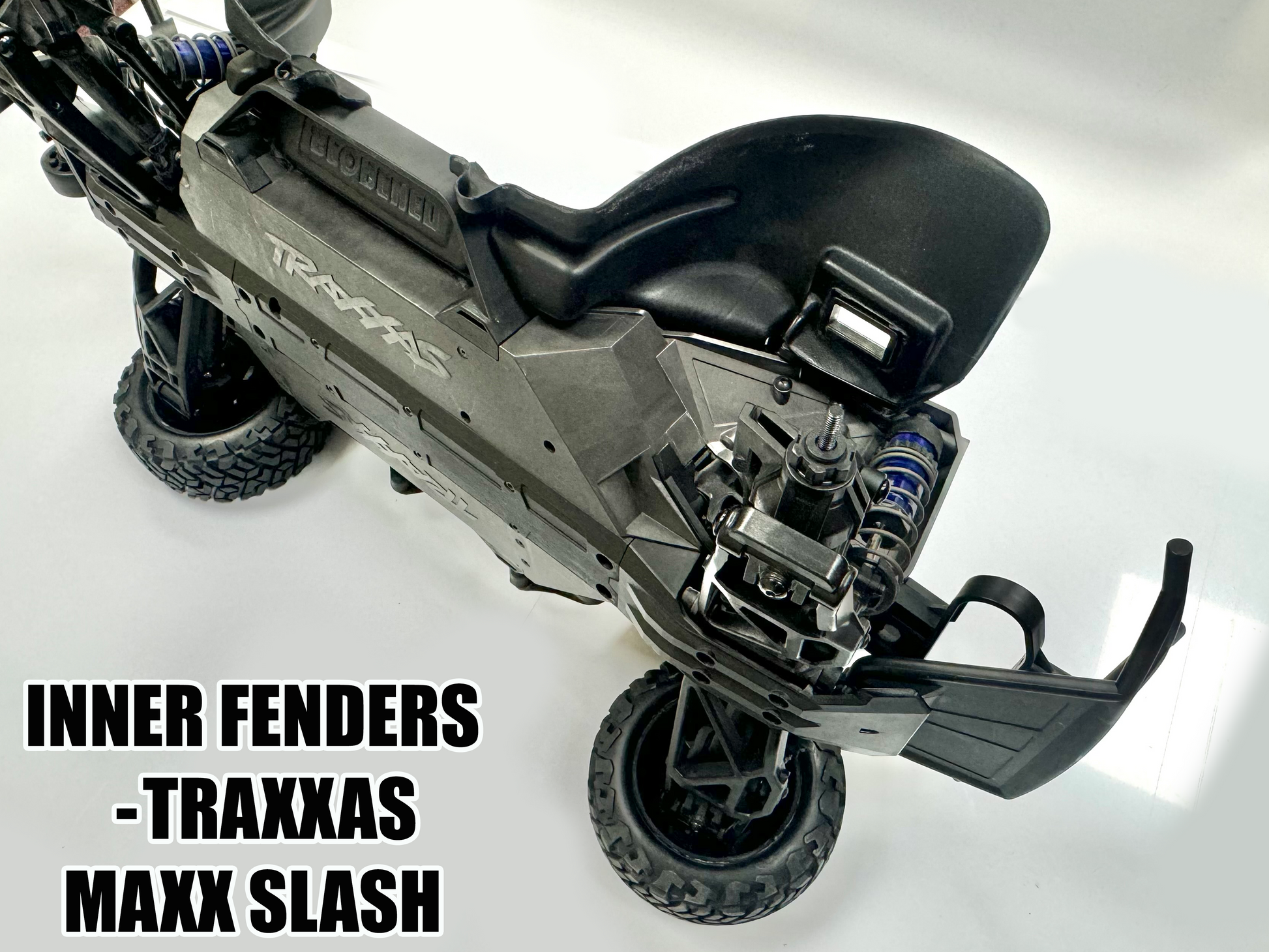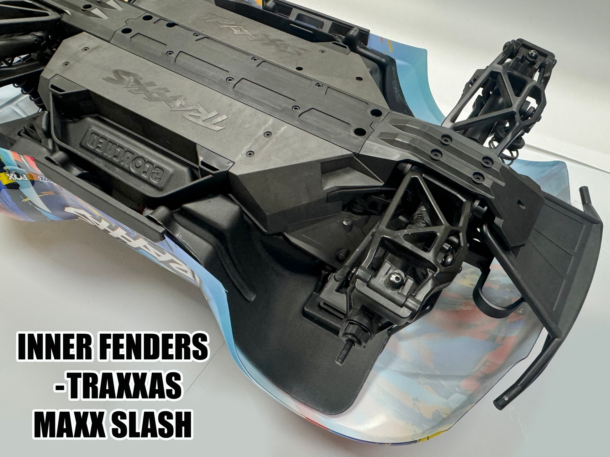 These fenders have been long proven as highly effective on Traxxas 1/10 slash and Arrma 1/8 Mojave cars - Now available for Maxx Slash!