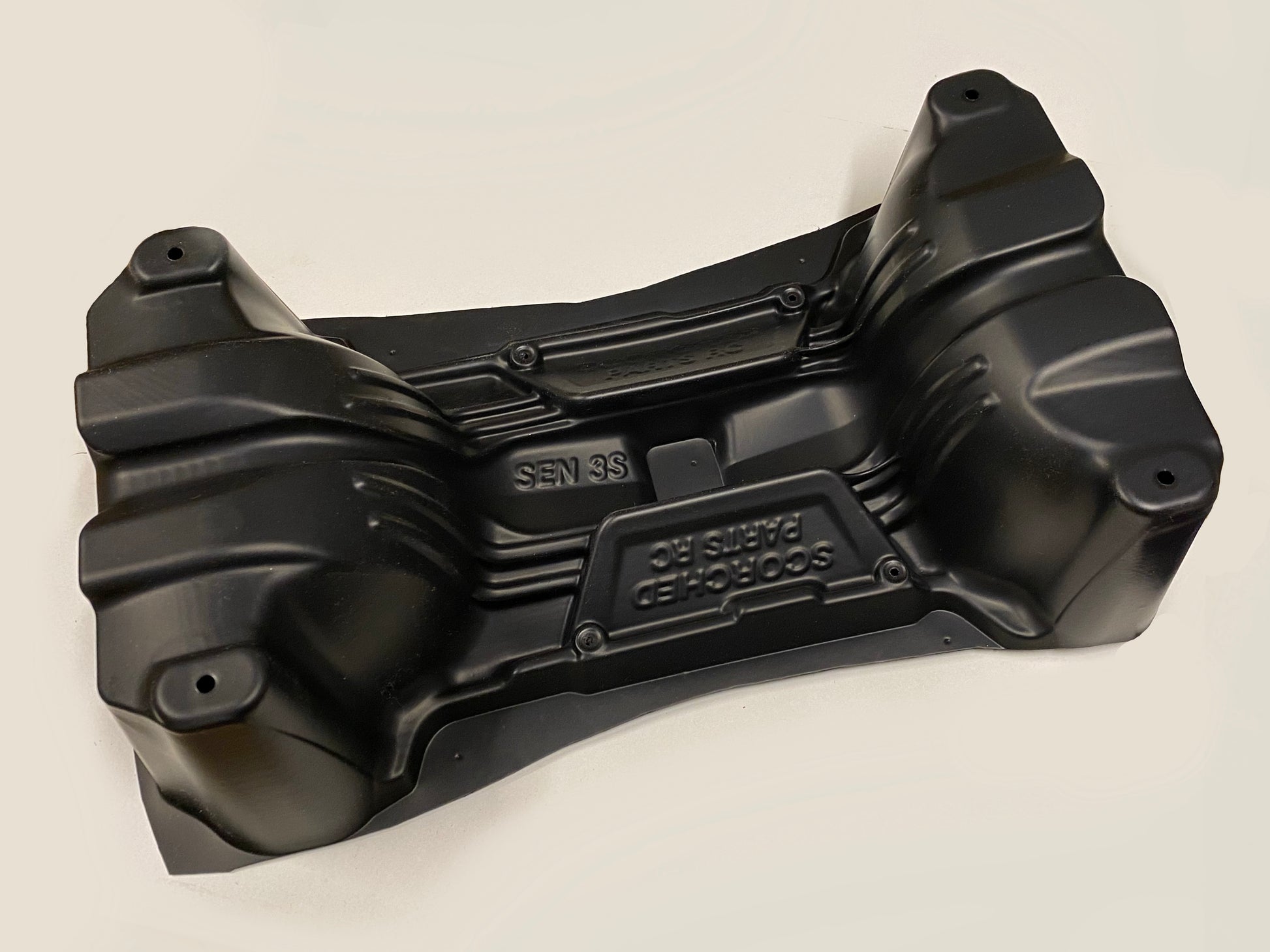 Tired of your chassis and delicate electronics filling up with mud / snow / grit / sand / grass etc? This is the answer. The big difference between this solution and others is that the inner fenders stop the dirt getting in, but allows air to freely circulate inside, meaning that the electronic stay a lot cooler than with other solutions. The other great thing is the easy access to battery and esc - just lift the body side & get to everything you need to.