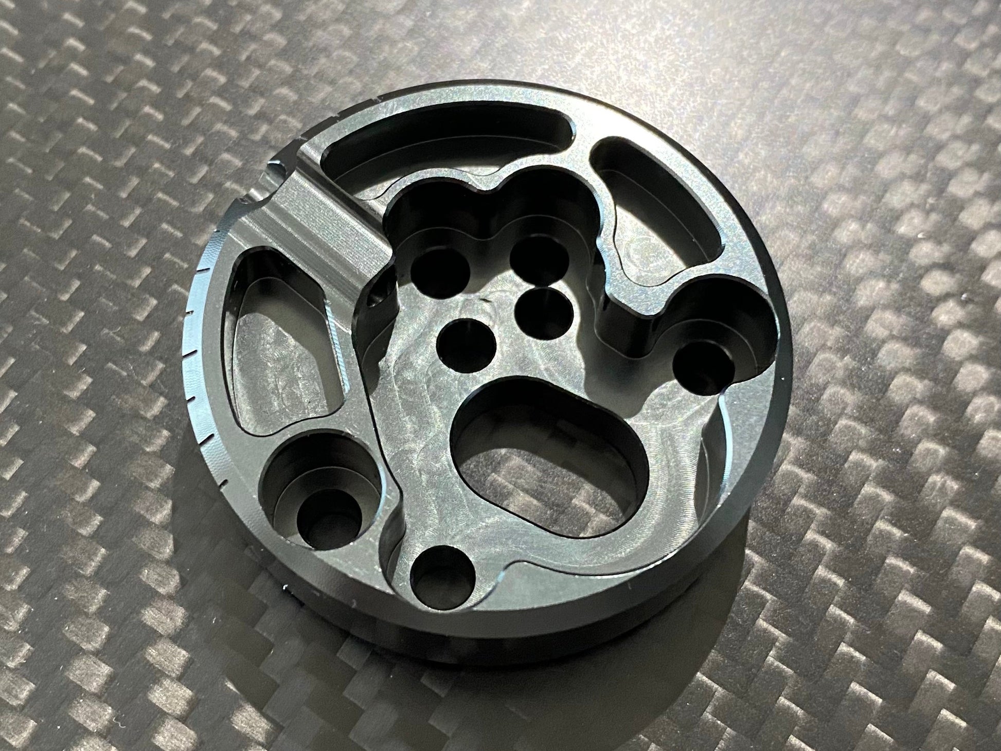 The Roto-lok mount offers a step change in motor rigidity. Machined from 7075 T6 aluminium. As well as a far stronger body, the feet of the mount are enlarged to aid rigidity at the chassis face.