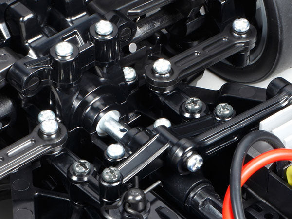 - Special feature 5 : Beveled main chassis for improved cornering clearance