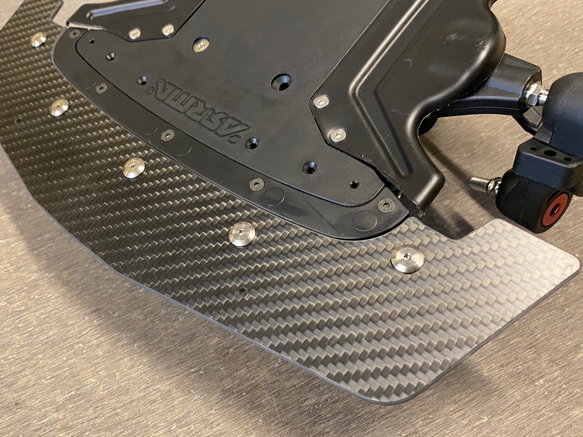Limitless type: Screws are longer than stock to help avoid pulling out on crashes, but side screws are short enough to fit under the spoiler. Only the centre screw is long with a nut on the back.