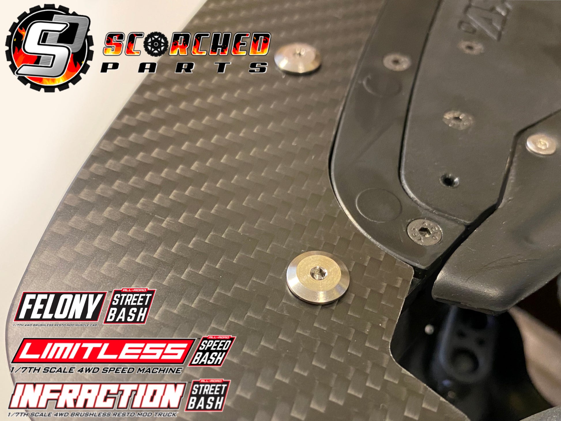 Precision machined Grade 5 Titanium screw set for Arrma front splitters.